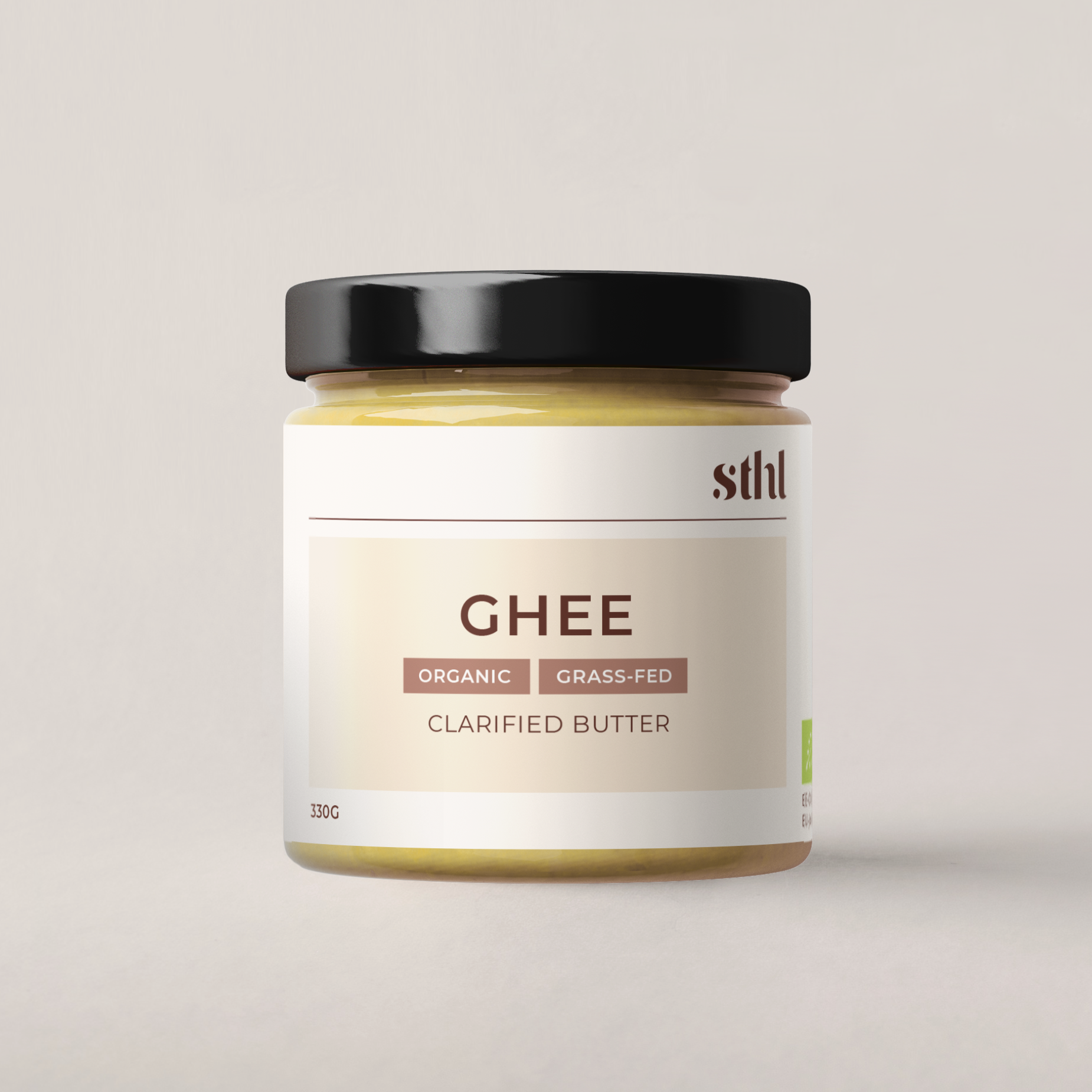 Vår ghee är gjord av ekologiskt gräsbetat smör av hög kvalitet.